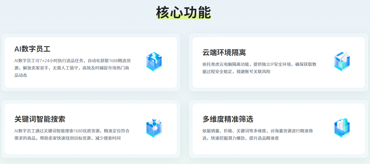 安全隔离机制:依托青虎云电脑的独立IP环境,避免因频繁数据请求触发平台风控,同时保障多账号运营安全