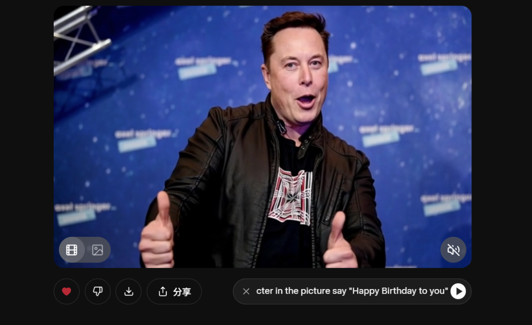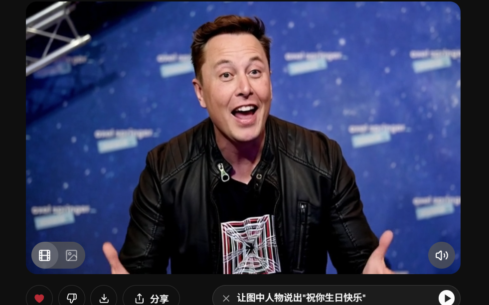 想让马斯克给你说生日祝福?上传他的照片,输台词,AI自动对口型+合成声音,最后点下载,刚开始用的是中文提示词前边“祝你生日”四个字还行,后边说话像是不知名语言一样,后边改成英文才像那么回事,中文语义理解还是不太行