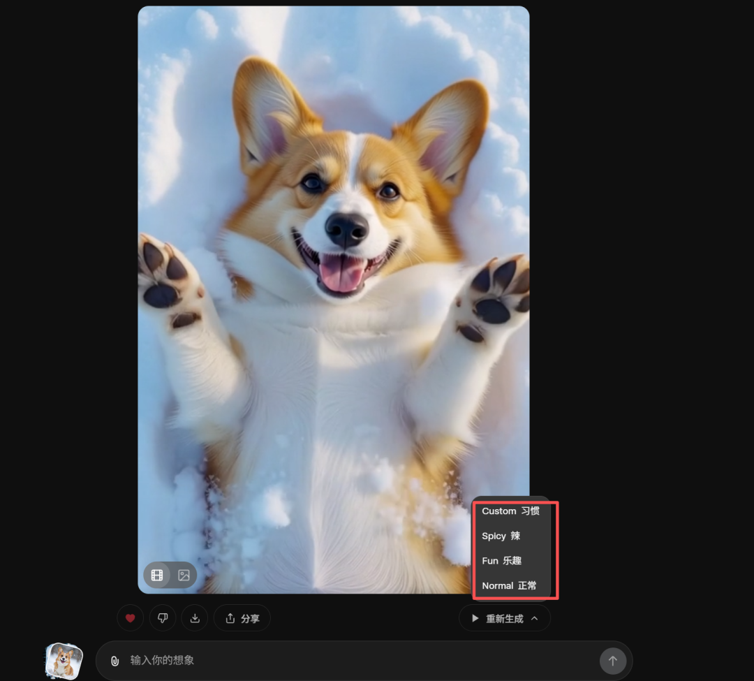 选模式(normal日常/fun搞怪/custom自定义),比如选“fun”模式,AI会自动加效果