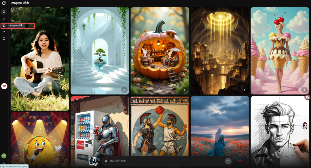 进去后一眼就能看到“Imagine”功能,点它!就像打开微信找朋友圈那么简单