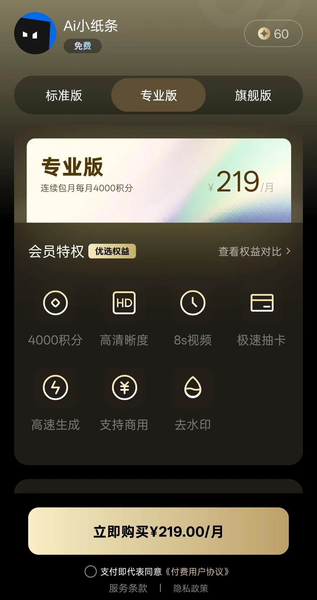 一共分为三个版本:标准、专业和旗舰。每日登录可得5积分。