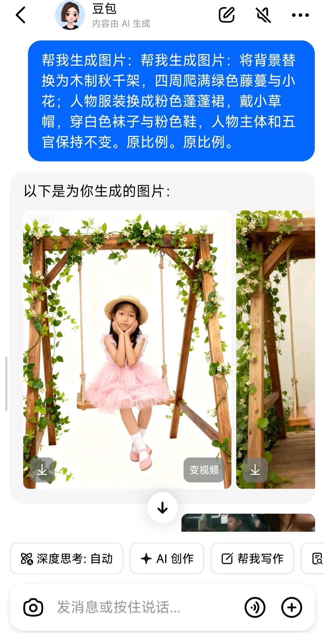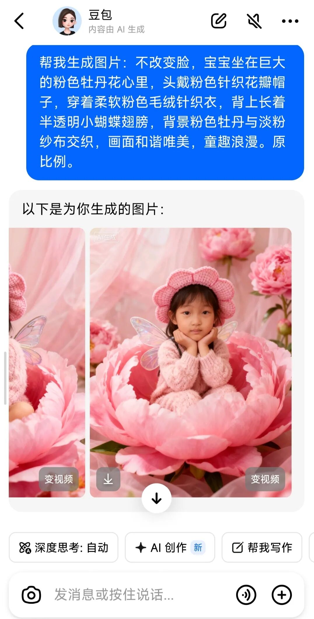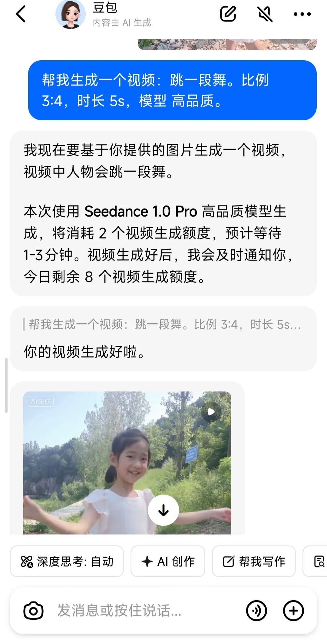 豆包有个AI创作的功能,可以生成艺术照和视频,只要给它一张清晰的照片和一段指令描述就可以了。视频每天有10个免费额度。如果自己不会输指令,还有模板参考,简直太方便了。我随手穿了几张照片试了一下 做出来的效果还可以。感兴趣的也快试试吧。