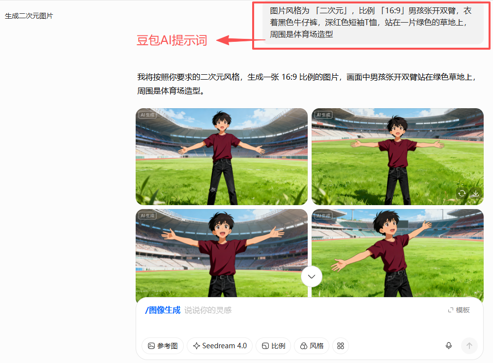 图片风格为 「二次元」,比例 「16:9」,所有图片在原对话里输入提示词生成。