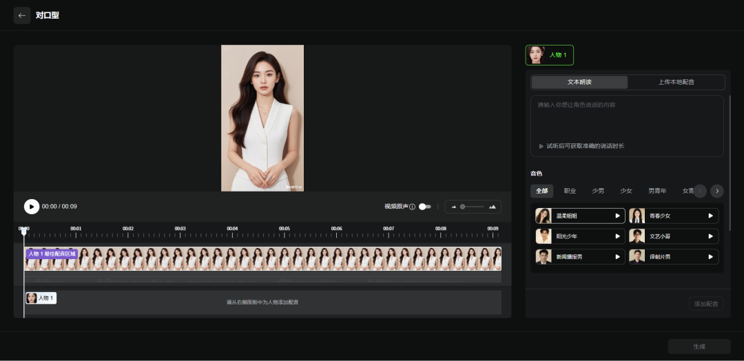 对口型:给语音或文字,自动调视频里人物口型,跟声音对上,不用手动微调。