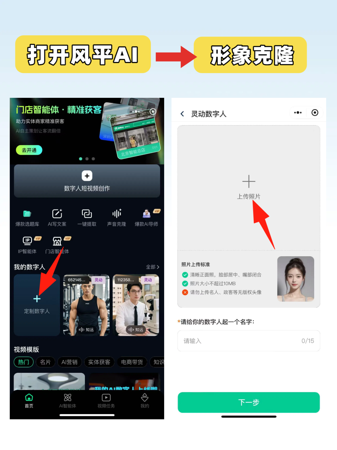 这款是我最近用得最多的,专门做 “数字人全流程带货”,尤其适合不想出镜、又想做兼职带货的朋友。我带女性营养品时,之前总怕同事刷到我真人出镜的视频,用风平 AI 克隆数字人后,终于不用躲躲藏藏了,而且全流程自动化,省了我来回切换工具的麻烦。