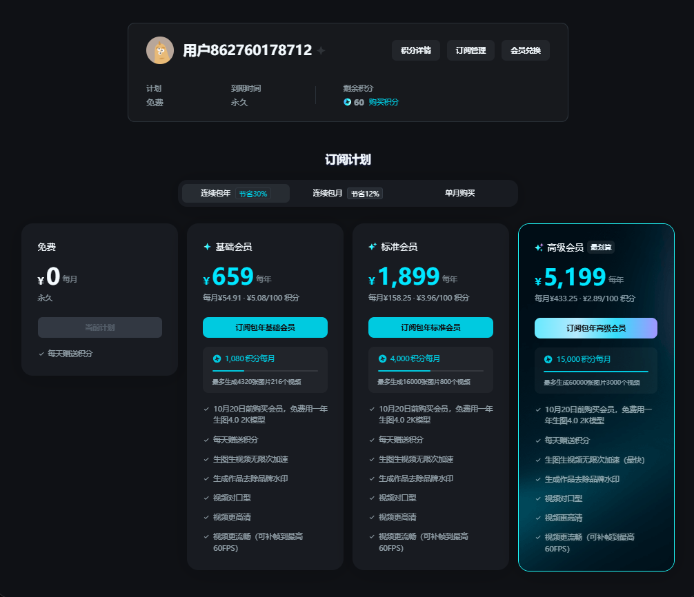 2. 图文联动党:即梦 AI—— 长周期划算但 “闲时限制” 不友好