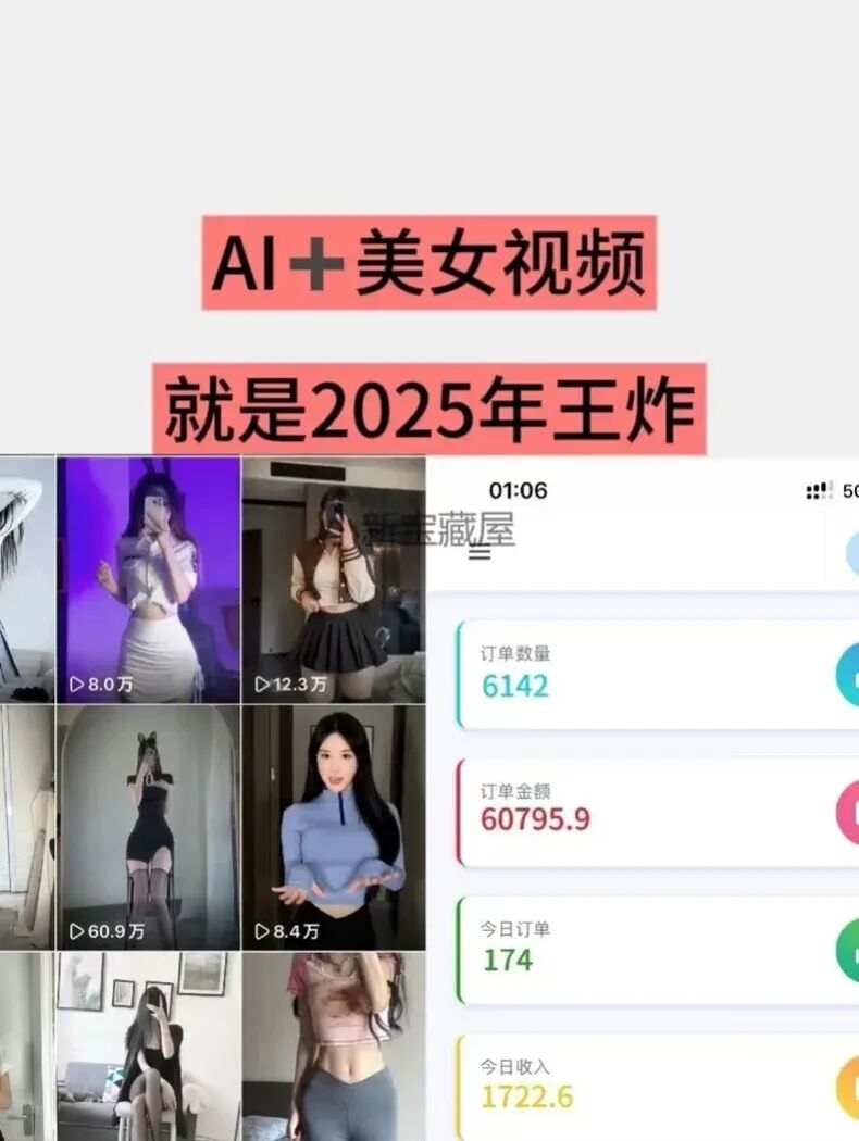 流量分成:抖音、视频号发满 10 条就能开收益,AI 美女视频属于 “平台扶持的新内容”,1 万播放比真人视频多赚 5-10 元,一天发 5 条,月收益轻松过 2000; -