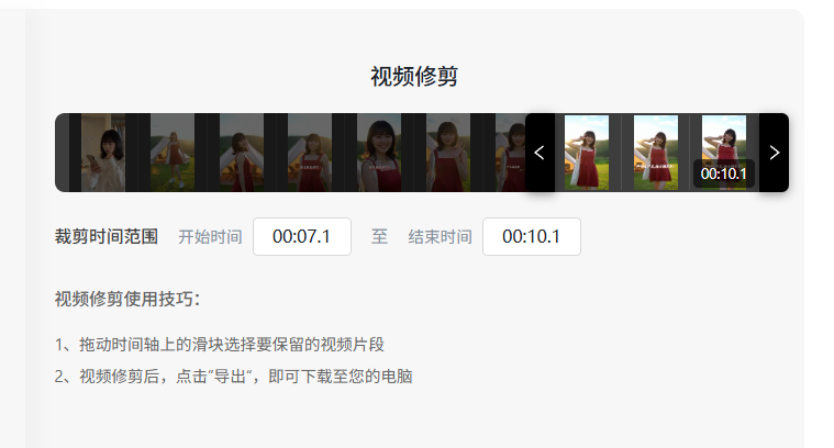 支持拖动或输入时间范围进行裁剪视频