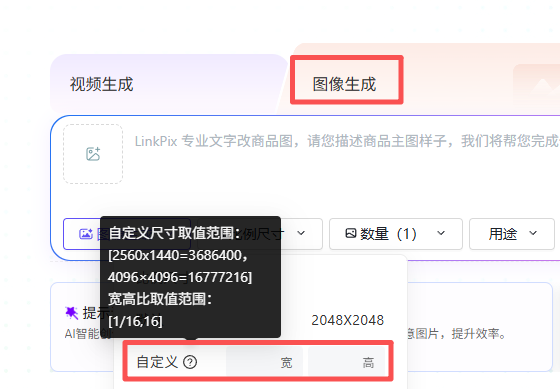 支持手动输入任意图像尺寸,满足个性化创作需求,摆脱固定比例限制;