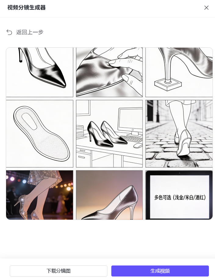 上传产品图后,AI自动生成视频分镜图,再根据分镜图生成完整视频,让AI视频画面更可控、更精准,完美贴合创作预期。