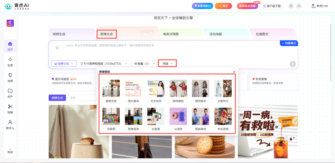 针对电商创作者核心需求,图像生成模块新增超多实用功能,覆盖全场景设计需求。