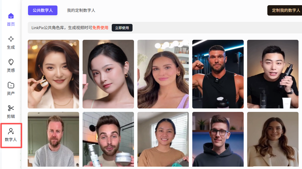 LinkPix提供多款免费公共数字人,适配所有时长视频,满足日常创作需求;