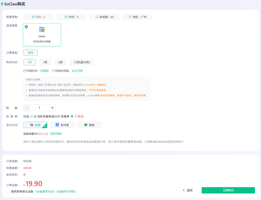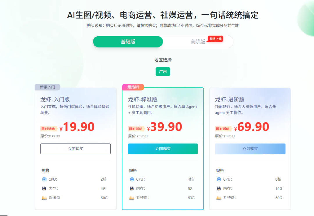 SoClaw云端服务器