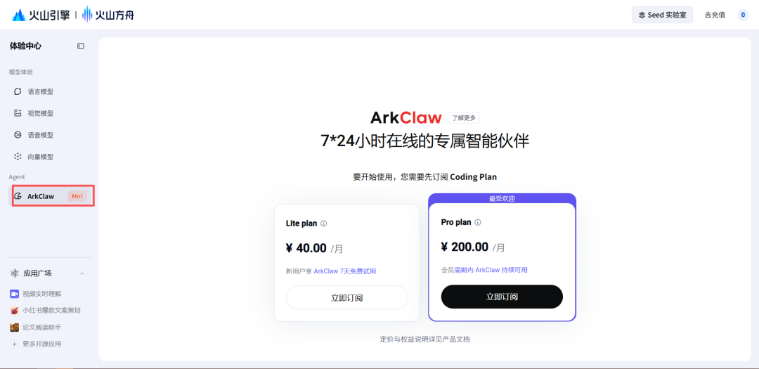 火山引擎Pro plan套餐